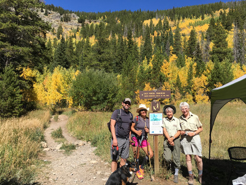 IPWA volunteers and trail users were treated to peak fall color and great weather at the September 15th 2018 Trail Head Host Day at the James Peak/East Portal Trailhead. Many anglers, backpackers, hikers and a few bow-hunters came up to enjoying the wilderness. Volunteers Sallie Greenwood, Donna Seaman, Sara Michl and Kelly Prendergast did a great job providing educational information to the many visitor who stopped by the table!